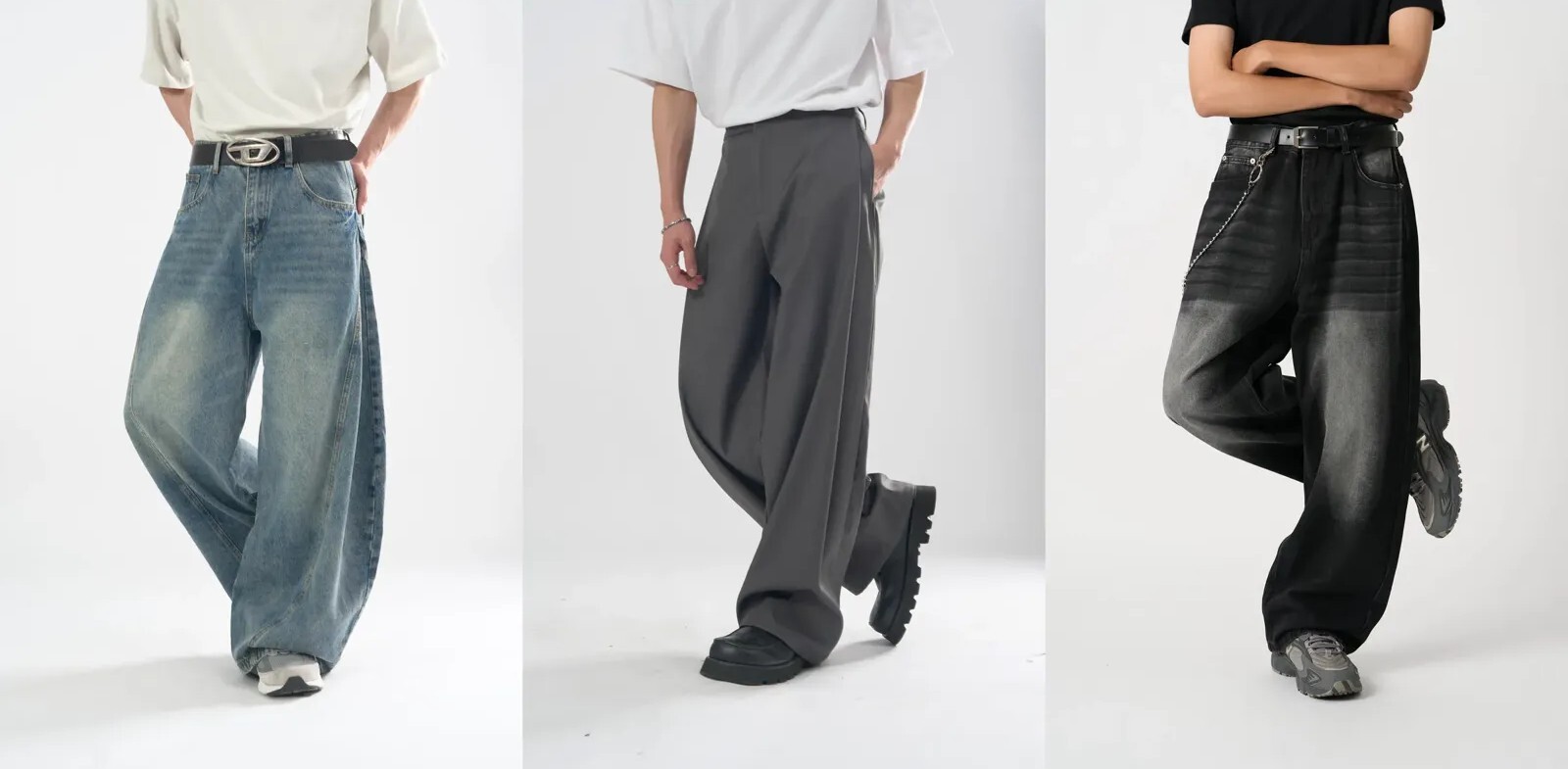 具有存在感的街頭造型,關鍵在「份量感」。選擇闊腿、彎刀或喇叭褲這類寬鬆版型,能在行走間自然帶出流動感與厚實線條,整體比例更俐落。