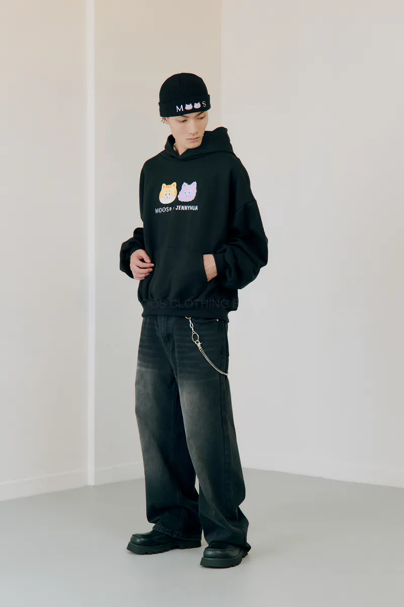 👉商品參考:煎妮花聯名可愛版絨毛帽T、寬版鬆緊腰灰色刷白直筒牛仔褲