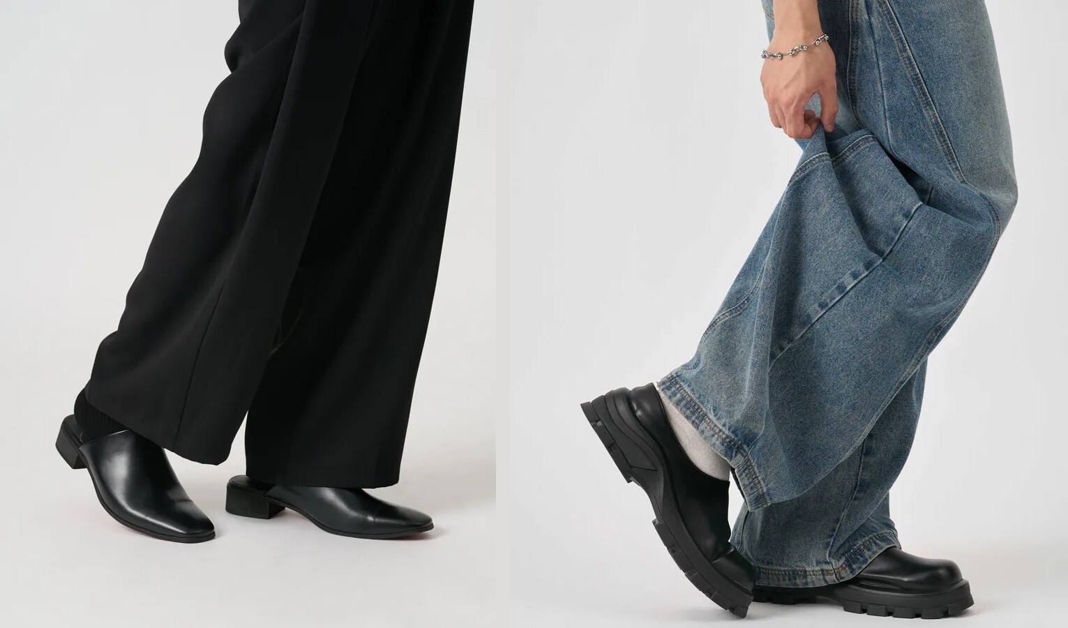 質感系男孩必備,可以選擇有刻意增高的鞋款,偷偷告訴你,皮鞋露出一點腳後很~有魅力!除了拉長身高比例外,落地褲會有容易拖地、踩到褲管的問題,厚底鞋能夠有效降低踩到褲管的機率,讓褲腳自然垂墜。
