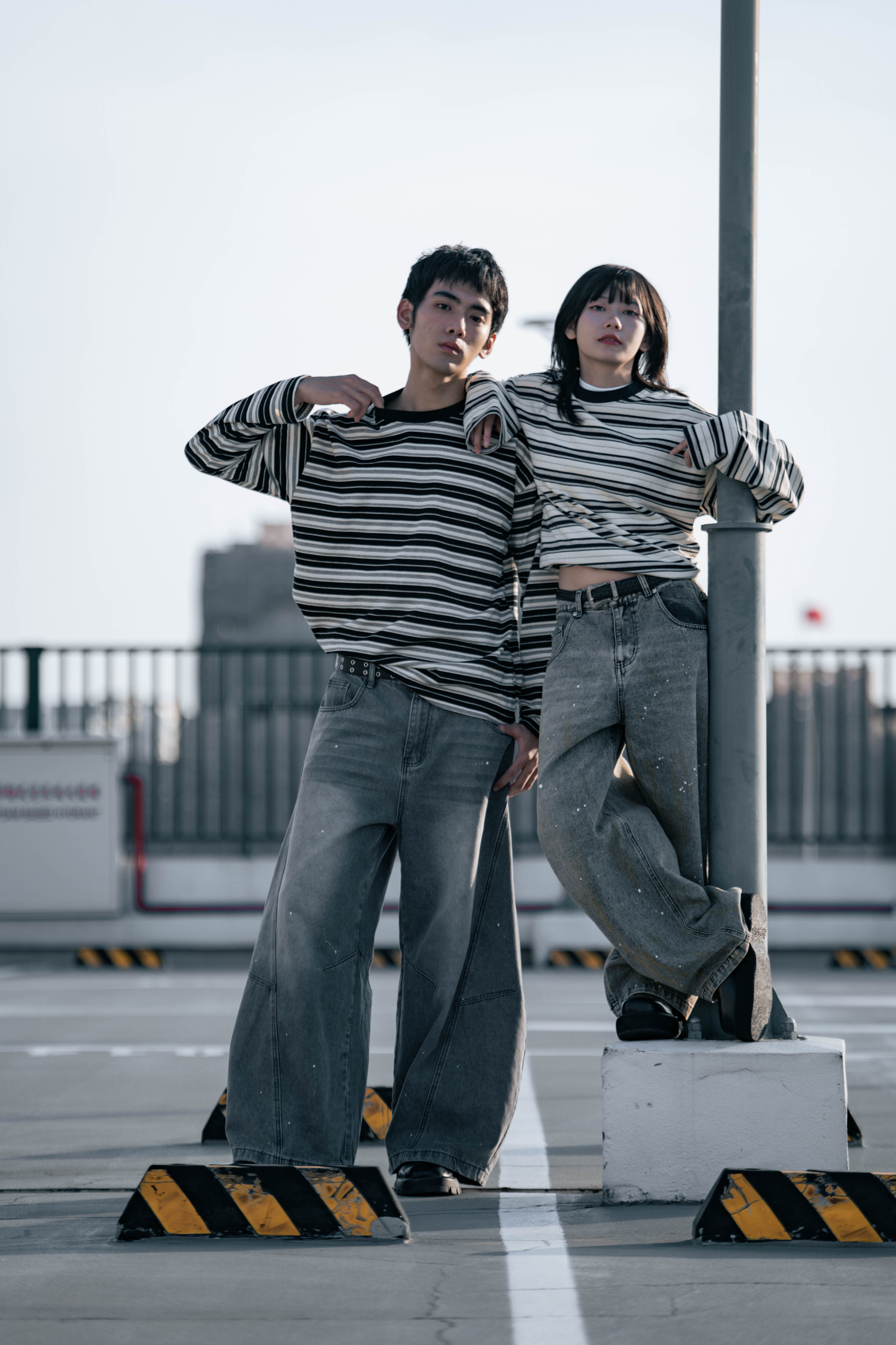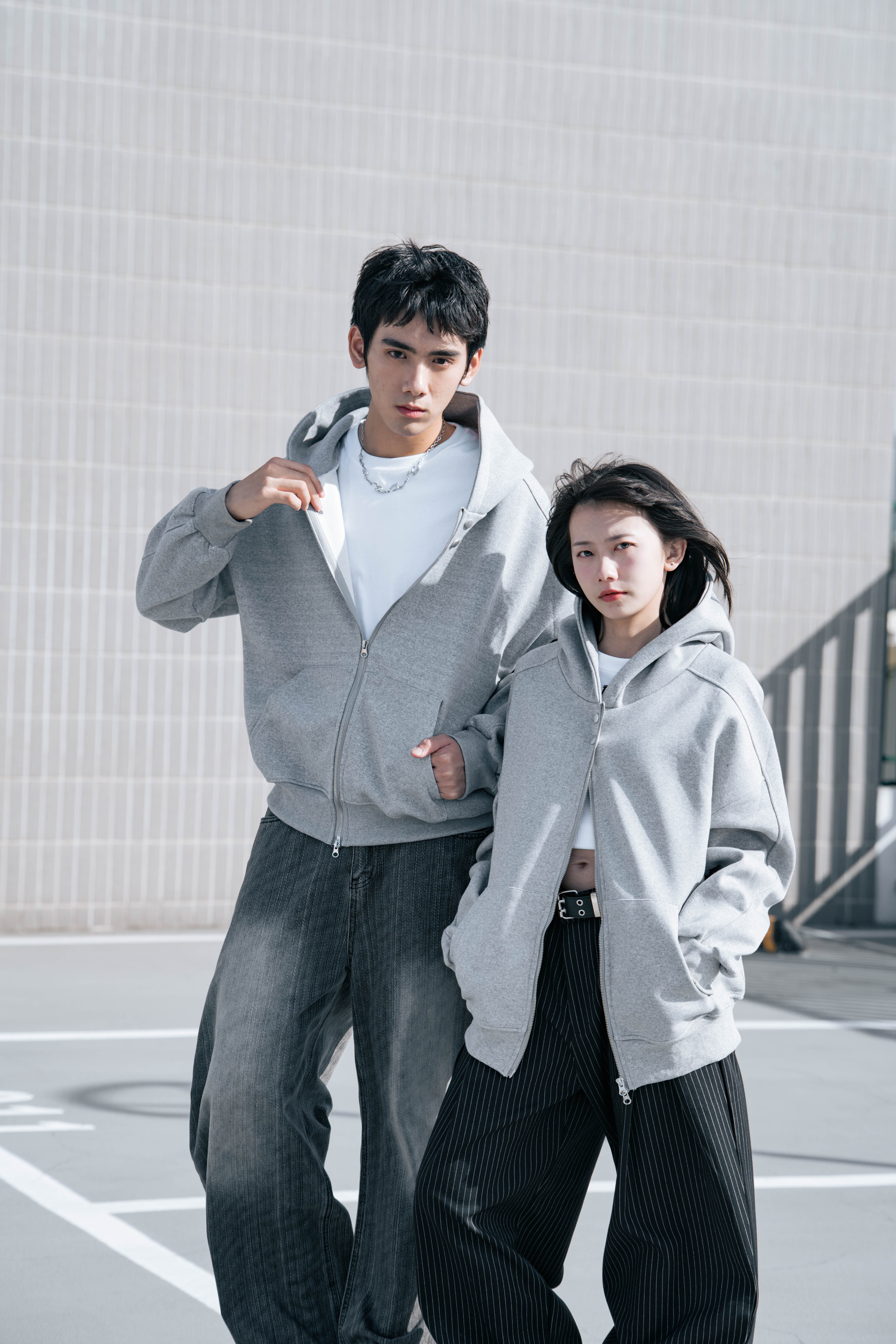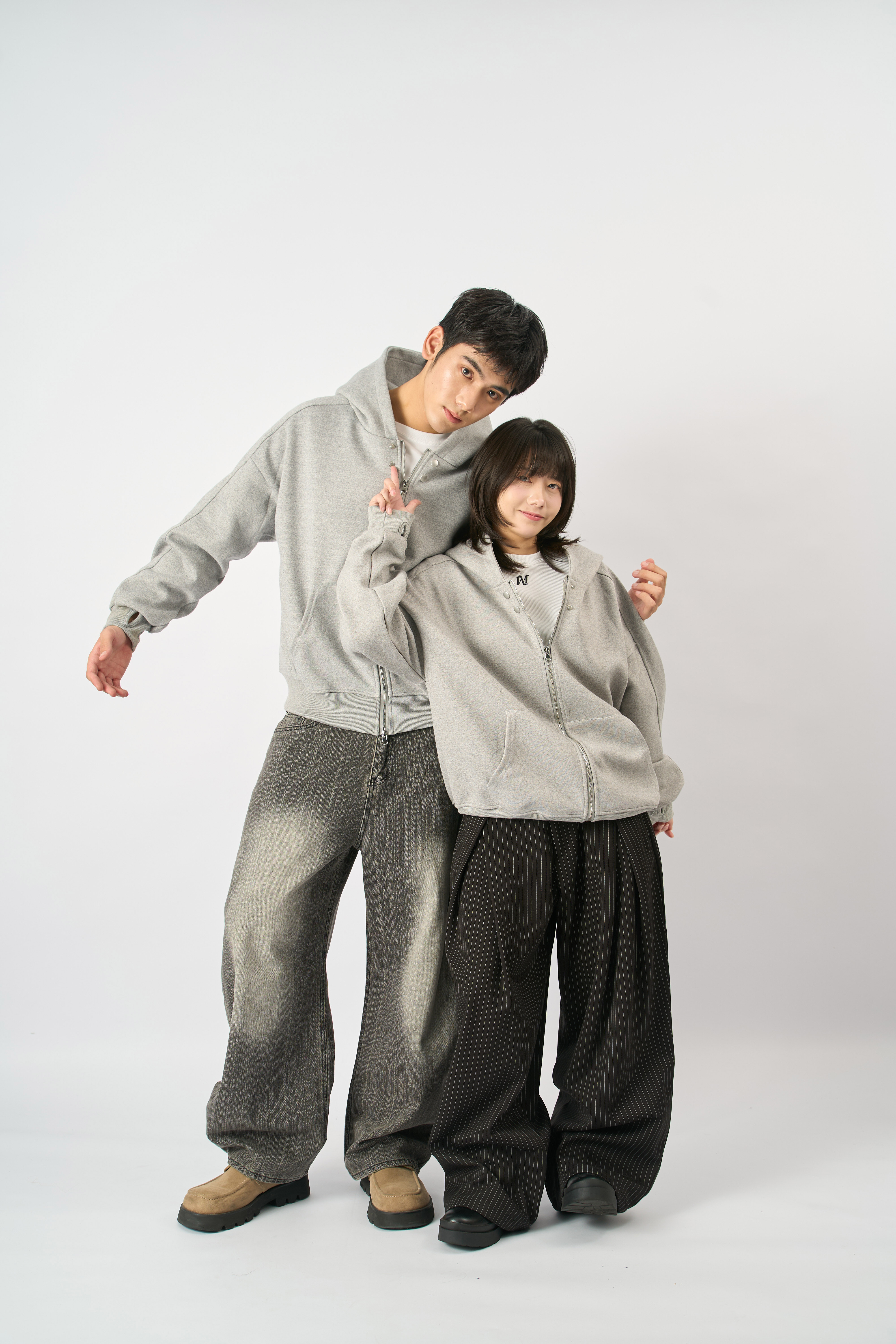 👉商品參考:鬆弛感雙拉鏈超厚磅純棉外套、刷色直條紋闊腿牛仔寬褲