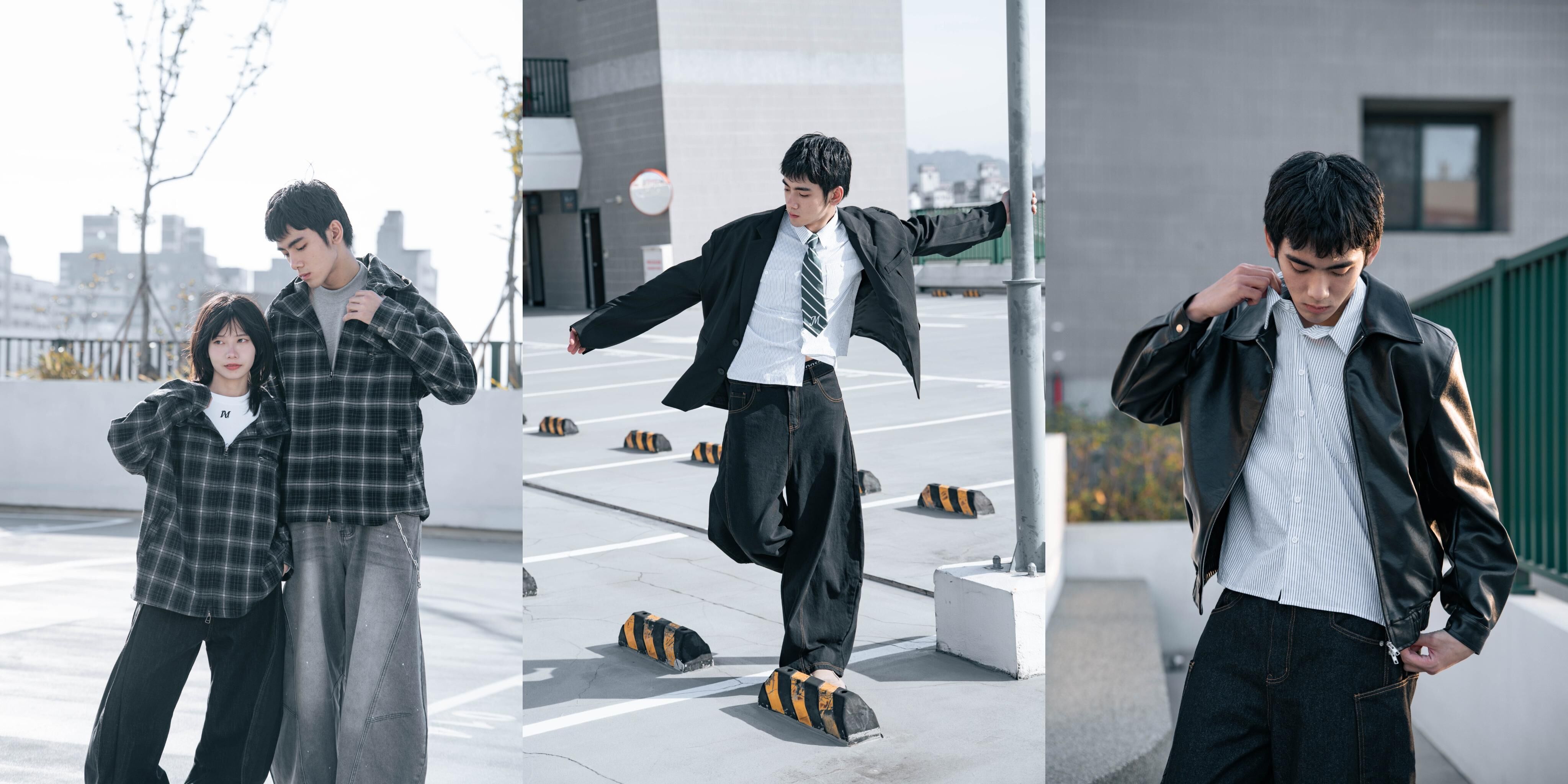 像是 Soft Tailoring(正式且休閒舒適)的短版西外+闊腿褲,到 Athflow 的帽T+西裝料(運動混搭微正裝),再到 Y2K 的單寧外套+工裝褲與BOXY短版回歸,這些搭配的核心都在「鬆弛感加俐落結構」。