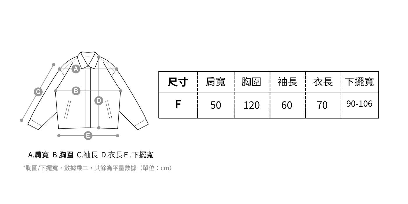 肩寬50 / 胸圍120 / 袖長60 / 衣長70