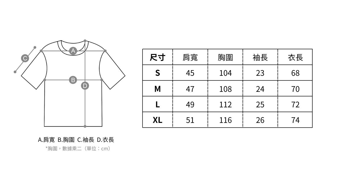 XL 肩寬51 / 胸圍116 / 袖長25 / 衣長74