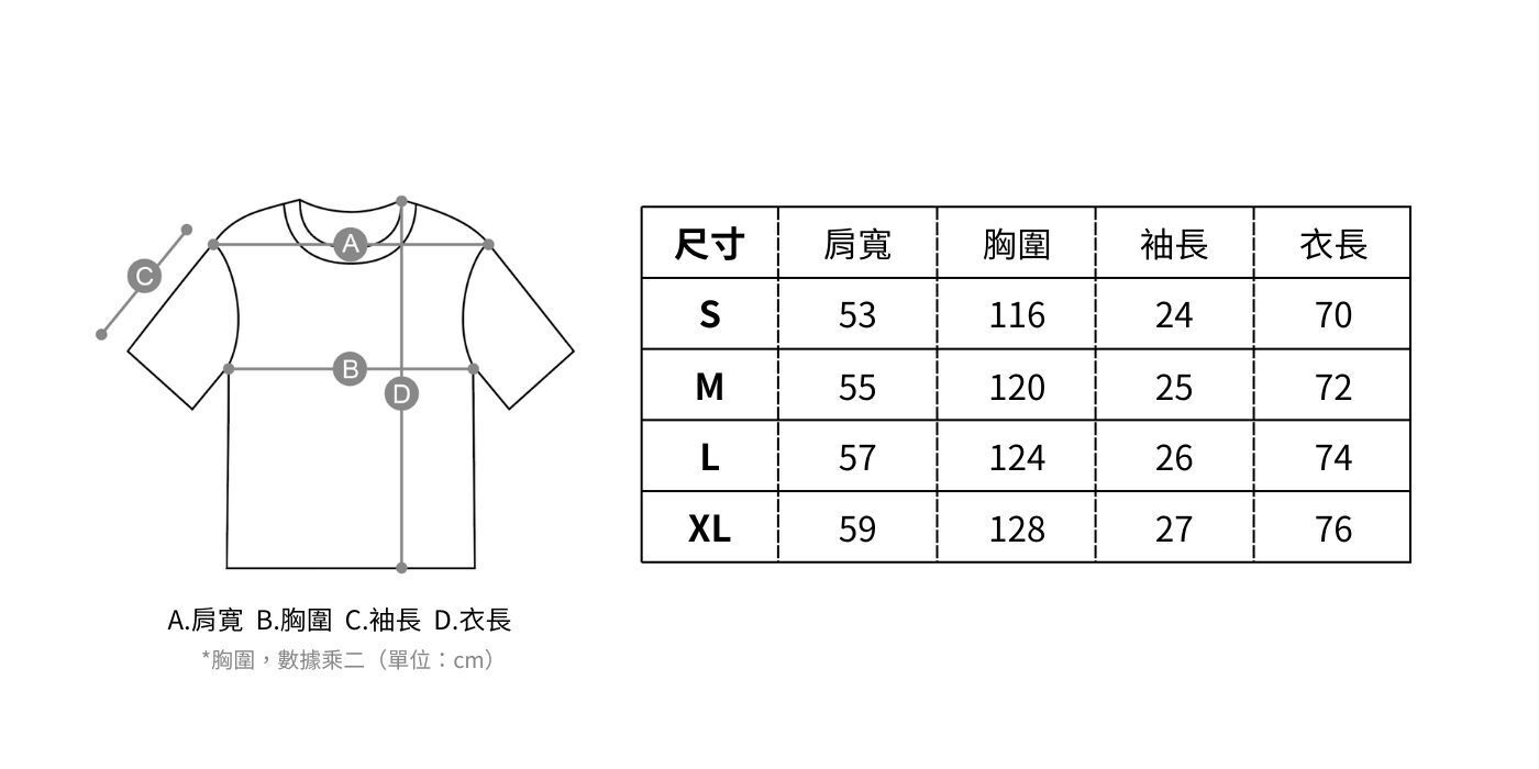 XL 肩寬59 / 胸圍128 / 袖長27 / 衣長76