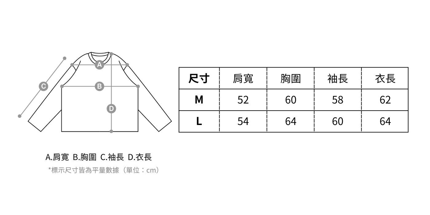 L 肩寬54 / 胸圍64 / 袖長60 / 衣長64