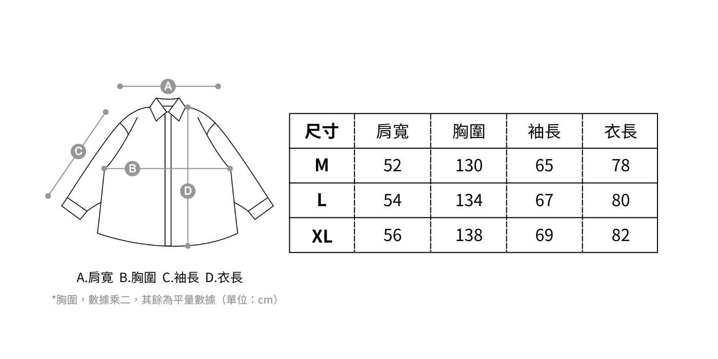 XL 肩寬56 / 胸圍138 / 袖長69 / 衣長82