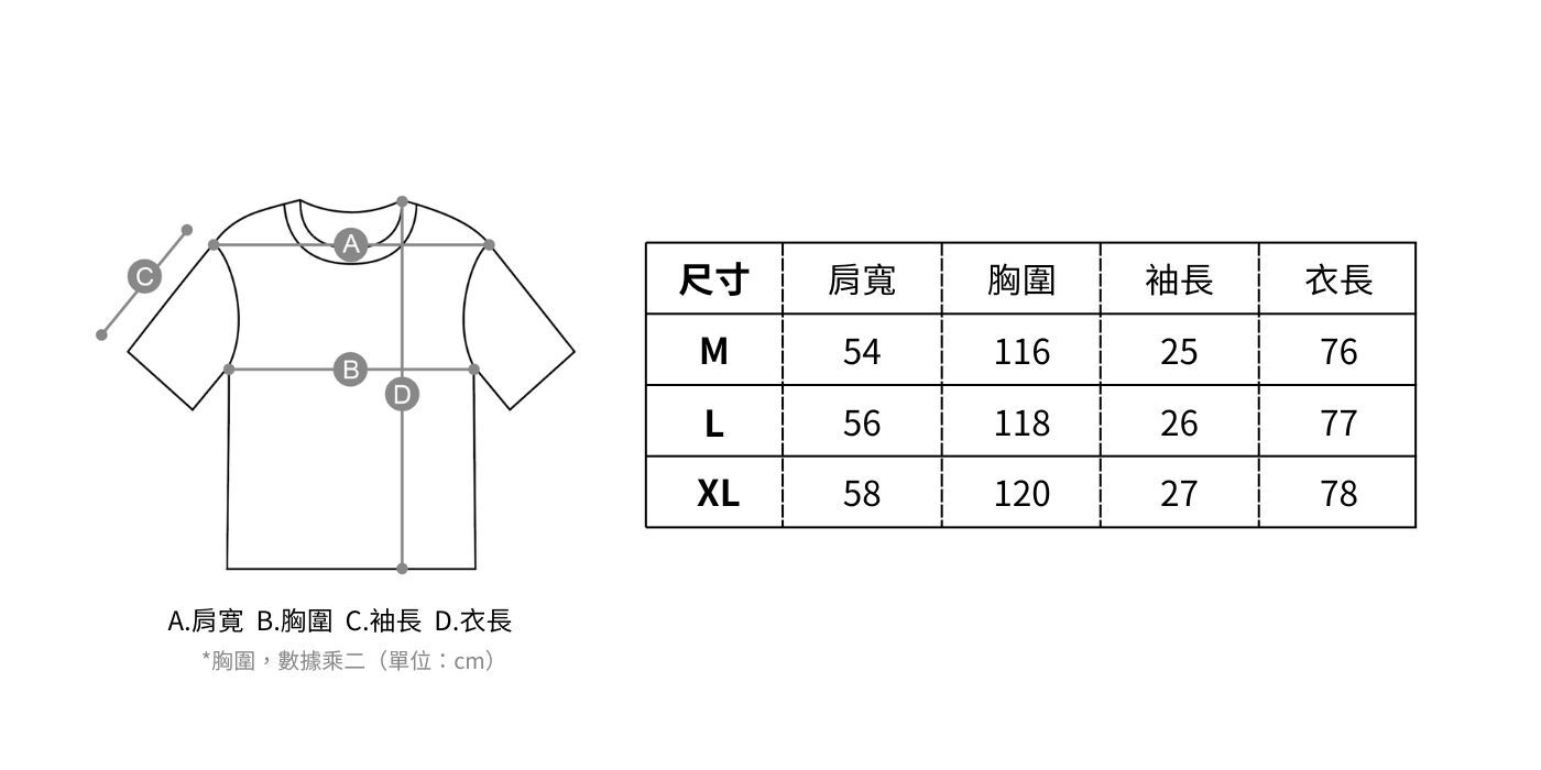 M 肩寬54 / 胸圍116 / 袖長25 / 衣長76