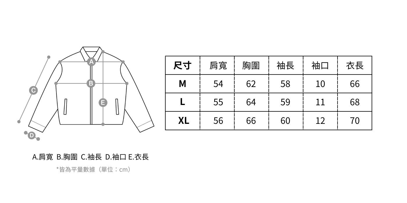 M 肩寬54 / 胸圍62 / 袖長58 / 袖口10 / 衣長66